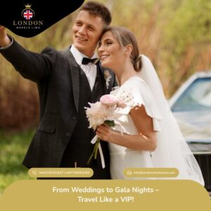 Turn your wedding into a royal affair with London Wheels Limo professional wedding chauffeur hire. Our luxury cars and expert chauffeurs ensure a smooth, stylish, and unforgettable ride for your big day. Book your chauffeur now and arrive in pure elegance.